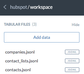For example: If you named an integration HubSpot in Stitch and selected the companies, contact_lists, and contacts tables to replicate, your workspace in your data.world account would be the same as the image on the right.